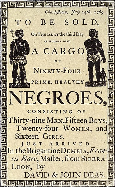 A slave auction advertisement in Charleston, SC