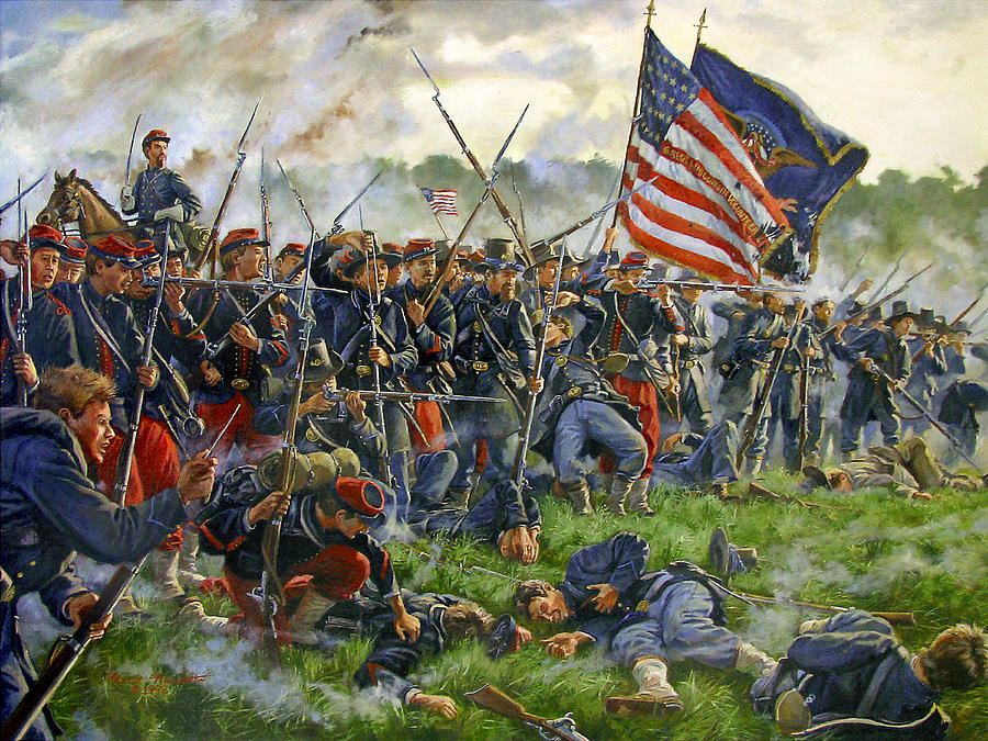 Three regiments from Douglass’ brigade pursued the retreating Federals and they were soon joined by Brigadier General Harry Hay’s brigade from Louisiana, whom Jackson sent to bolster the Georgians. As Hays’ brigade advanced, they crashed into one of Ricketts’ other brigades under the command of Colonel Richard Coulter. Coulter’s brigade just emerged from the East Woods and was moving to support Duryee’s men. In some of the fiercest fighting of the battle, Hay’s men drove Coulter’s brigade back into the East Woods, where it rallied, strengthened by reinforcements. Exhausted and running low on ammunition Hays’ brigade was forced to retreat.