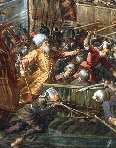 Throughout the 16th and 17th centuries the Ottoman Turks terrified European Christendom on both the land and on the sea. The Turkish conquest of Constantinople in 1453 marked the collapse of the Byzantine Empire and opened the gates of Europe to the Ottoman scourge. The refusal of Western Christendom to come to the assistance of their Eastern brethren also revealed the vulnerability of a Europe beset by religious conflict. Fast forward more than a 100 years later and Christian Europe—now divided between Catholics and Protestants—once again faced an existential threat from the Ottoman Turks but this time from the high seas. On October 7, 1571, an assembly of Catholic nations and city states, known as the Holy League, defeated the Ottoman navy in epic fashion off the coast of Southwestern Greece in the battle of Lepanto. The battle of Lepanto is the largest naval battle of the Renaissance involving over 500 ships. It is also the last major naval engagement fought primarily between rowing vessels.