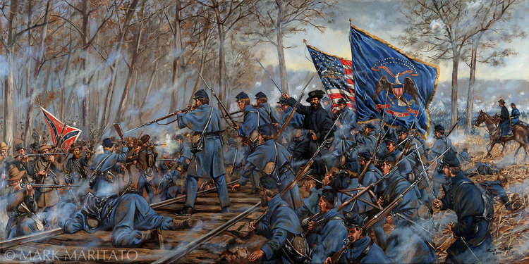 The Irish Brigade coming under heavy fire attacking Mayre’s Heights