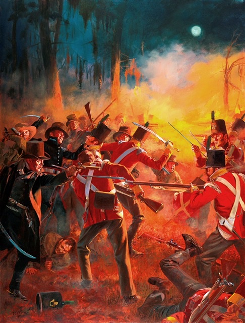 As American scouts learned of the British movements, they quickly sent word back to Jackson that a British advance guard of over 2,000 troops was less than 10 miles from the city. Jackson, however, wasn’t sure that these movements weren’t anything more than a feint. Nonetheless, in his typical fashion, he made a decisive decision. Turning to his aides Jackson declared, “Gentlemen, the British are below and we must fight them tonight.” Jackson quickly assembled 2,100 of his men and moved out to meet the British threat, vowing that no British soldier would enter the city unless it was over his dead body.
