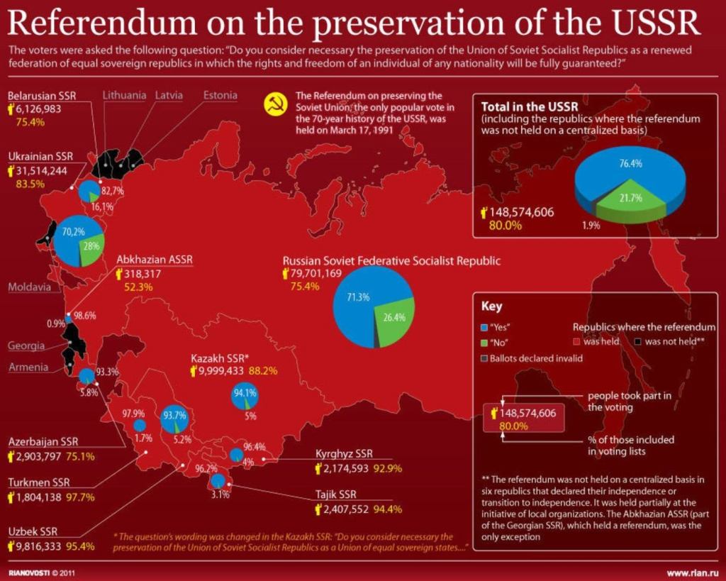 Thirty years ago today, Soviet authorities conducted a referendum on the future of the Soviet Union that would prove to be a key inflection point that would ultimately lead to the failed August 1991 coup attempt and the subsequent dissolution of the USSR. The question presented to the Soviet people was a very simple one, “Do you consider necessary the preservation of the Union of Soviet Socialist Republics as a renewed federation of equal sovereign republics in which the rights and freedom of an individual of any ethnicity will be fully guaranteed?” The referendum was conducted against a background of increasing nationalist pressures in the non-Russian Soviet Socialist Republics, unleashed by Gorbachev’s reformist policies of Glasnost and Perestroika. Increasingly bold efforts by the Baltic States to assert their sovereignty and challenge Soviet authority, prompted a violent crackdown by the Soviet military first in Lithuania on January 13, 1991 and then in Latvia later that month.The crackdown in the Baltic States generated a sharp rebuke in the West, further complicating Soviet leader Gorbachev’s efforts to manage the increasingly difficult task of reforming the country while suppressing the nationalist pressures bent on tearing the country apart. The referendum was Gorbachev’s gambit to defuse these nationalist pressures and stem the collapse of the Union without having to resort to violence. Gorbachev hoped it would make clear that despite rising separatist sentiments in many parts of the USSR, a majority of Soviet citizens wanted the country to remain unified. Additionally, he wanted to outflank hardliners who opposed any changes to the union structure.