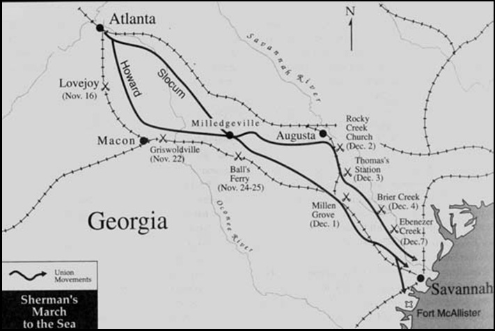 On November 15, 1864, Major General William T. Sherman and his 62,000 man army of grizzled veterans departed Atlanta and began their now famous 300 mile march across the state of Georgia laying a path of destruction that would drive a stake through the heart of the Southern Confederacy and hasten an end to the war.